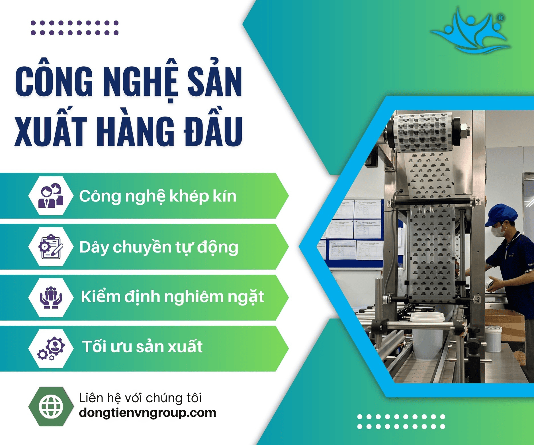 Đồng Tiến Group áp dụng công nghệ sản xuất sản phẩm theo quy trình khép kín, tự động hoá của Pháp, giúp bảo toàn hương vị tự nhiên, màu sắc đẹp mắt. Quy trình sản xuất hiện đại này giúp tạo ra các sản phẩm có chất lượng vượt trội, đáp ứng được tiêu chuẩn của thị trường quốc tế. Tất cả sản phẩm của Đồng Tiến Group đều trải qua quá trình kiểm định nghiêm ngặt, đáp ứng các tiêu chuẩn quốc tế trước khi đưa ra thị trường.