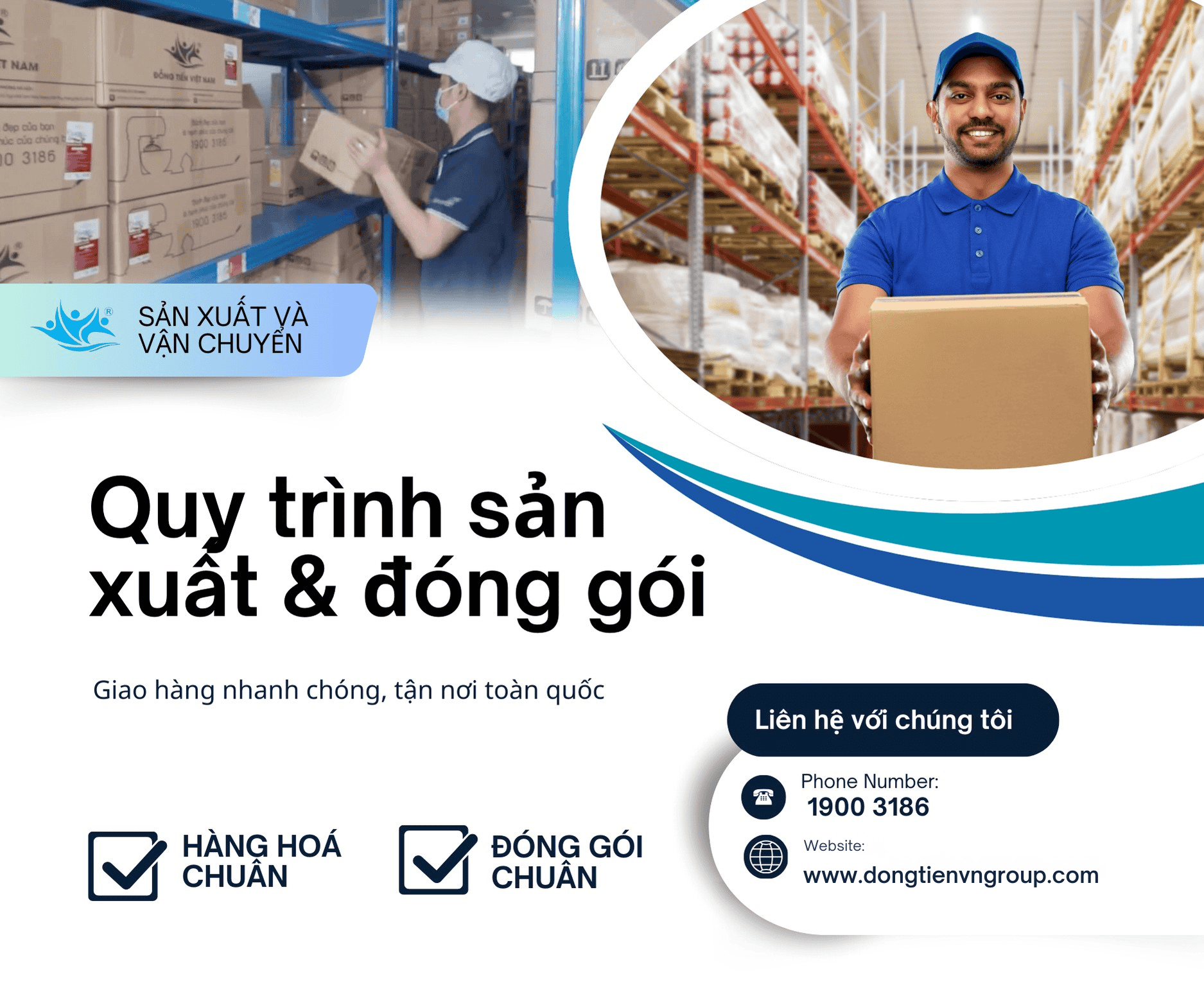 Sau khi xác nhận, bộ phận nhà máy sẽ sản xuất hàng hoá theo yêu cầu và gửi tới kho vận tiến hành chuẩn bị hàng hóa và đóng gói theo tiêu chuẩn của Đồng Tiến Group, đảm bảo: